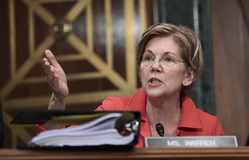 Senator Elizabeth Warren, a member of the Senate Banking Committee and a Democrat from Massachusetts, explains to Wells Fargo & Co. Chief Executive Officer Timothy Sloan why he should no longer be running the bank. They speak during a Senate Banking Hearing on Tuesday.